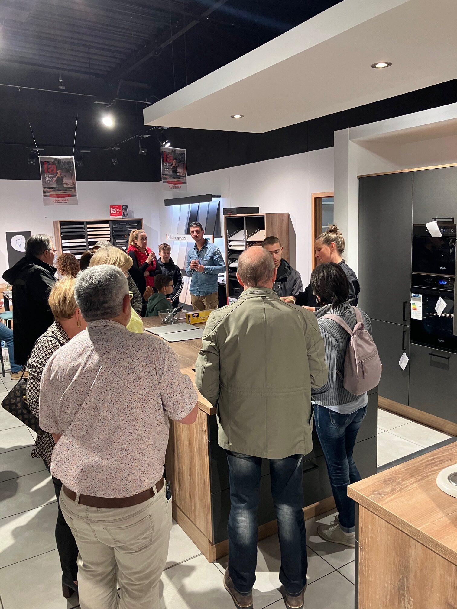 J’ai eu le plaisir d’animer une démonstration pâtisserie lors d’une soirée organisée par le magasin Cuisinella de Guingamp à Ploumagoar, sous la direction de Guillaume Lelay. Environ une trentaine de clients étaient présents pour cet événement convivial et chaleureux.
