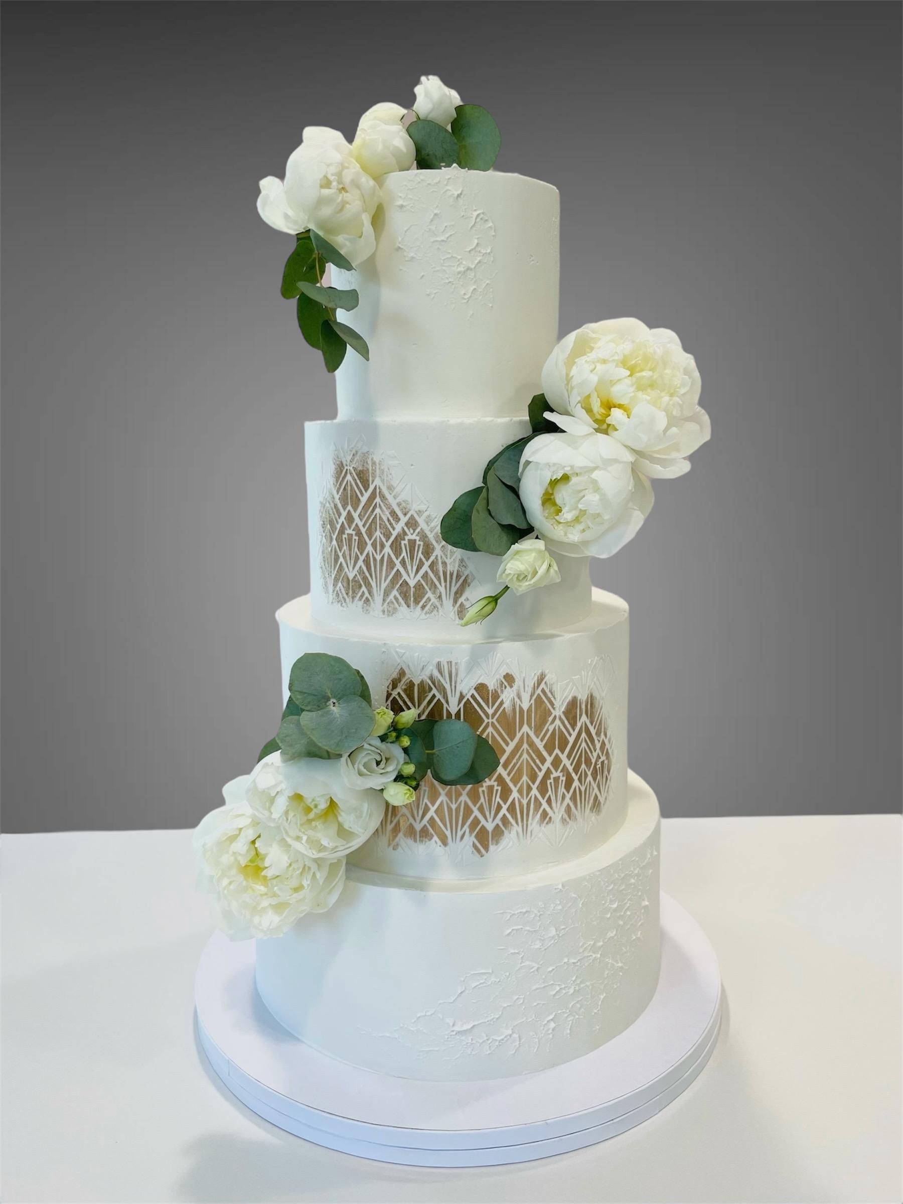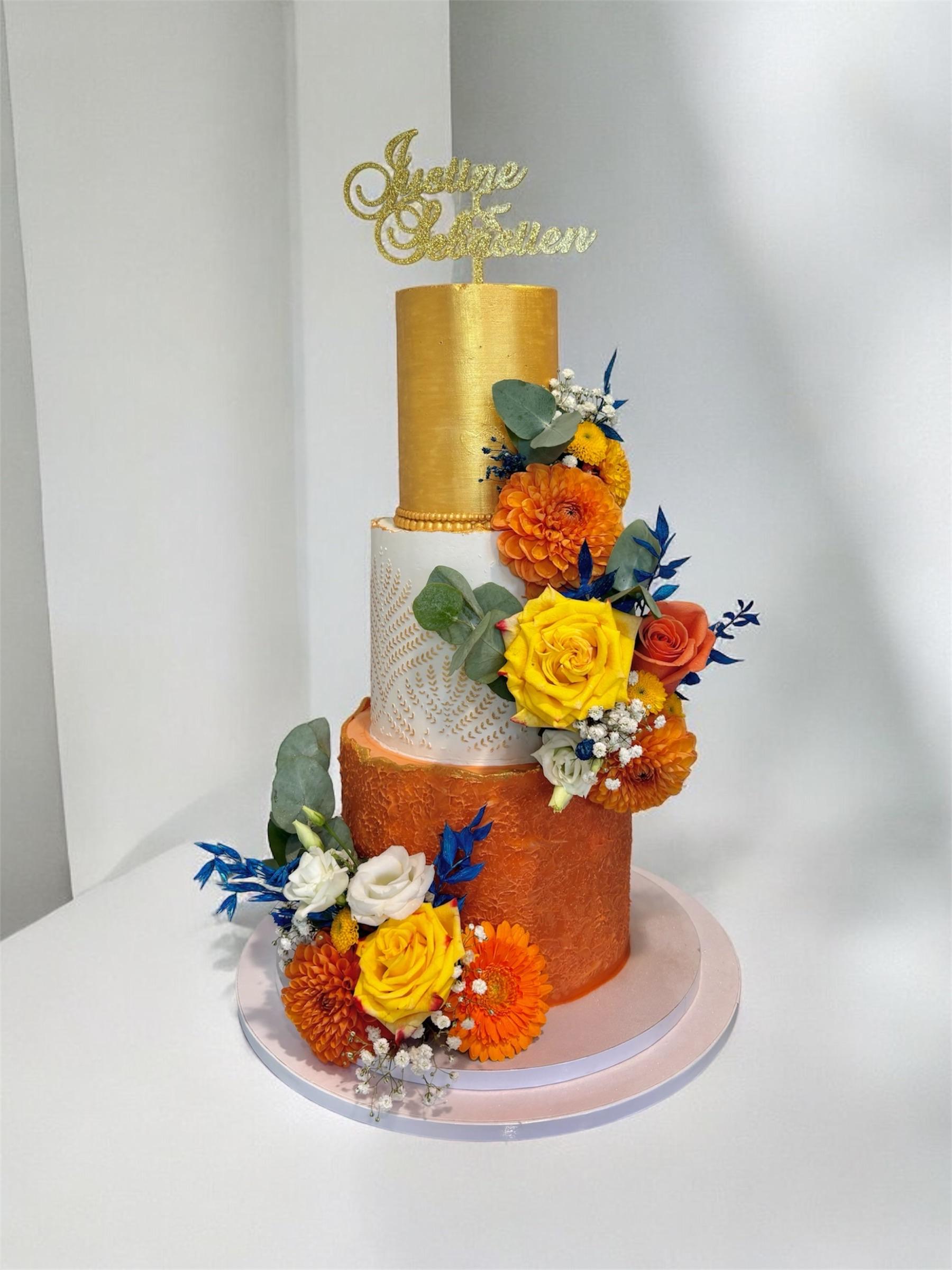 Que vous prépariez un mariage champêtre, bohème, moderne, coloré ou tout autre, je m’adapte à vos thèmes et couleurs. Les possibilités de décorations sont innombrables: perles, dentelles, niveaux déstructurés ou texturés, du matelassé, du drapé, des fleurs naturelles ou séchées, des fleurs en sucre…