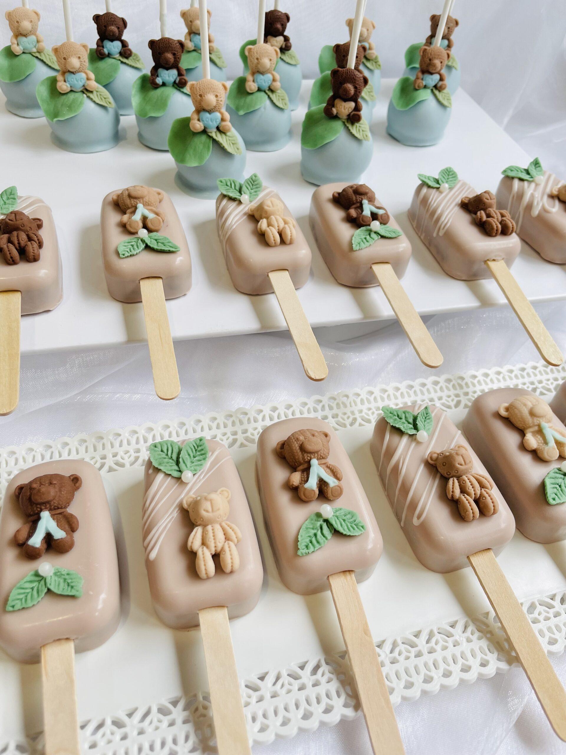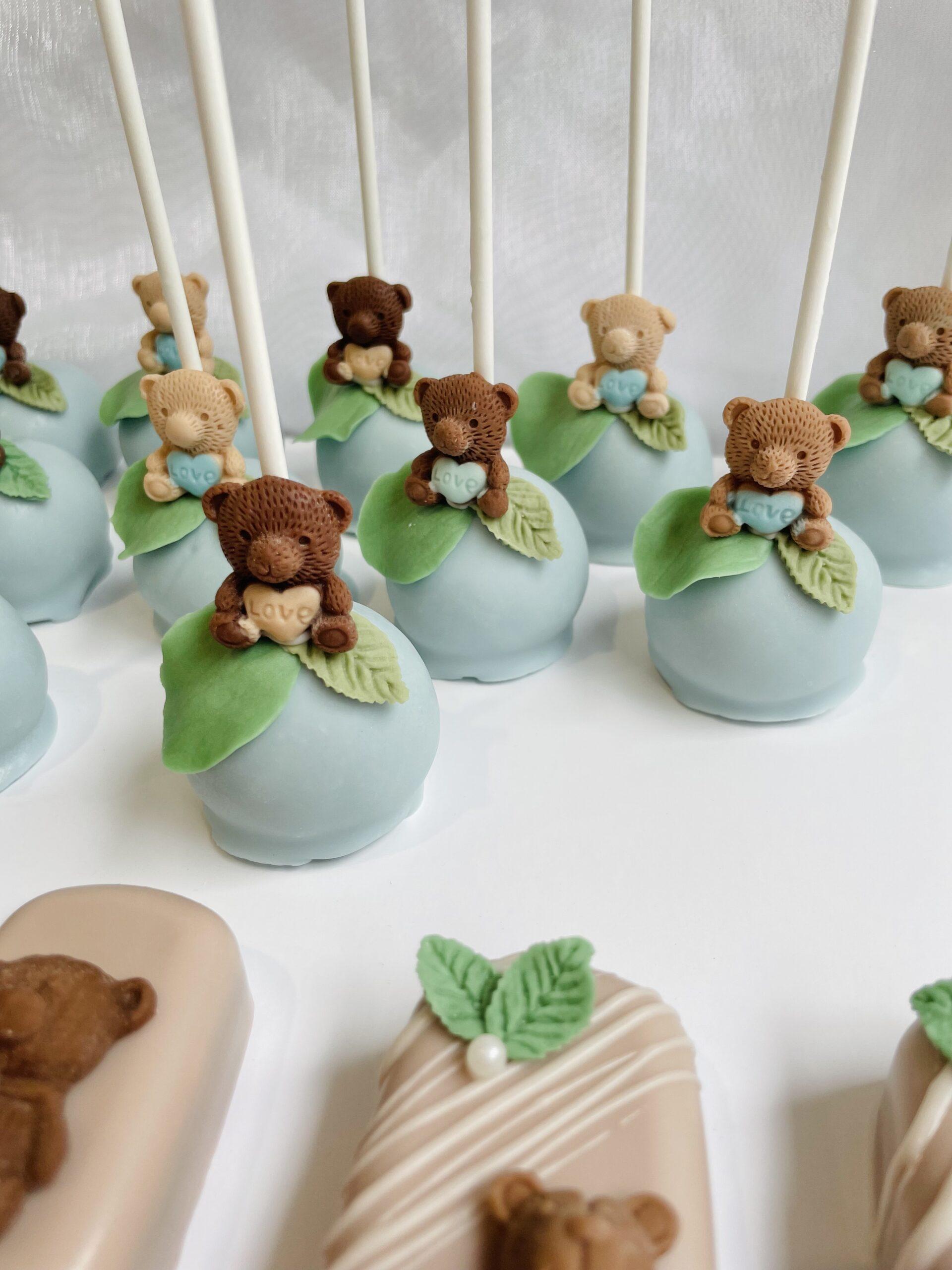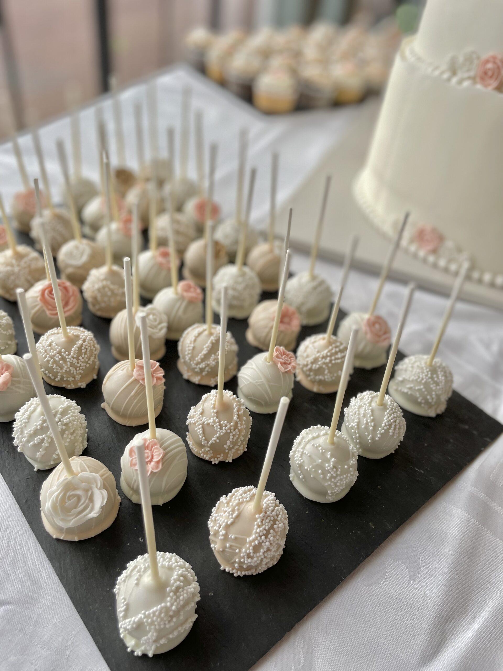 Les adorables cake pops sont des petites sucettes de gâteau recouverte de chocolat et décorées en harmonie avec votre thème. Une multitude de possibilités en terme de décoration.