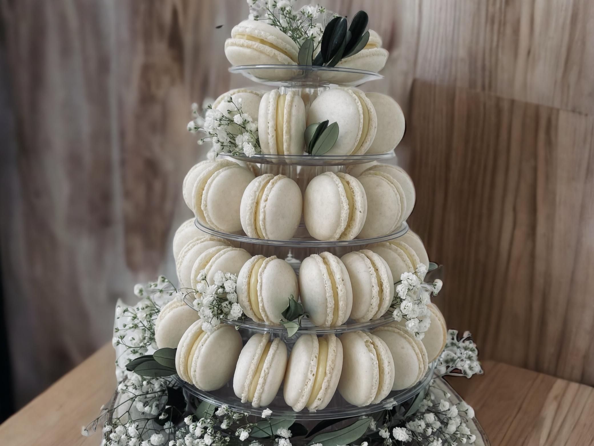 La location du support pour les pyramides de macarons est incluse dans le tarif.